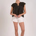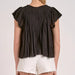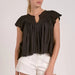 Laid-back and effortlessly chic, this flutter sleeve top features gathered detailing, a split neckline, and a raw hem for that just-right undone finish. The lightweight, flowy fabric drapes beautifully, making it perfect for pairing with denim shorts, cargos, or wide-leg pants. A summer staple with a little edge.