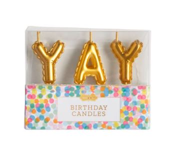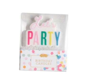 Hand-painted or foiled wax birthday candle on plastic stakes.