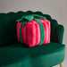 Wrap your space in holiday cheer with the Stripe Gift Box Large Pillow. Featuring festive red and pink velvet stripes tied up with a plush green bow, this oversized pillow is equal parts cozy and eye-catching. Its soft, squishy fill makes it perfect for lounging, gifting, or stacking under your tree for a playful twist. Whether on a bed, chair, or nestled next to the fireplace, it adds a pop of holiday fun wherever it lands.