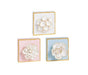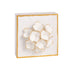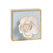 Hand-painted wooden block features dimensional plaster life-like flower.