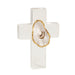 Acrylic cross features layered hand-painted oyster shell.