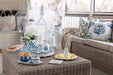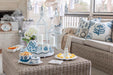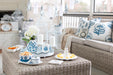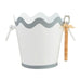 2-piece set. Hand-painted metal ice bucket with wavy edge. Comes with rattan wrapped stainless steel bottle opener