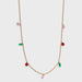 Celebrate the season in style with the Allegra Holiday Necklace, a festive design featuring a gold 16–18 inch adjustable chain adorned with vibrant red, green, and pink crystal charms. Each charm sparkles with holiday cheer, making this necklace the perfect accessory for adding a touch of color and joy to your winter looks. Lightweight and versatile, it layers beautifully with other chains or makes a chic statement worn solo.