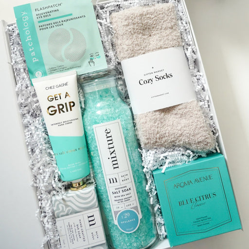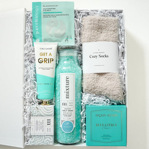 Original price $140.00 - Original price $140.00Original price$140.00$140.00 - $140.00Current price $140.00This gift box includes: Patchology Rejuvenating Eye GelsChez Gagne 'Get A Grip' Hand CreamCozy SocksAroma Avenue Blue Citrus CandleMixture Opulence...
