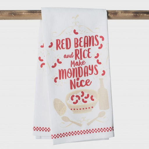Celebrate one of New Orleans’ most beloved Monday traditions with this fun kitchen towel featuring a bowl of red beans and rice alongside the cheer...