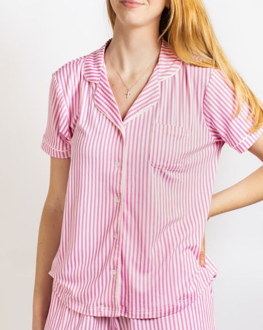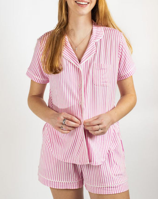 Pinstripe Short Sleeve Button Up Sleep Shirt