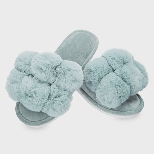 Luxe Pom-Pom Open Toe Plush Slippers