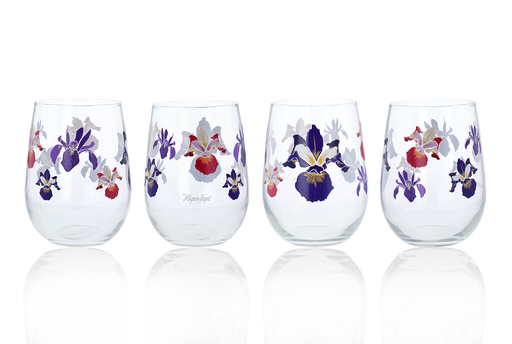Original price $68.00 - Original price $68.00Original price$68.00$68.00 - $68.00Current price $68.00Stemless Wine Glasses from Mf. At Home featuring Iris flowers in various colors and sizes. Set of four Multicolor ceramic printed Iris flowers. Di...