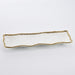 Ideal for appetizers, cookies and fruit. Unusual rectangular shape compliments many table setting styles. Great on buffets where counter space is at a premium. Gleaming white porcelain with lustrous gold beads in titanium. Food safe. Dishwasher safe. Oven safe to 500°. Easy Care.