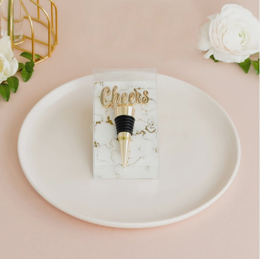 • Gold Metal Wine Bottle Stopper - Cheers