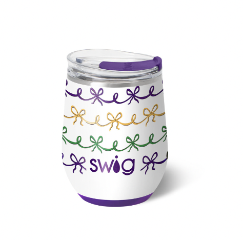 Mardi Gras Bows Stemless Wine Cup 12oz