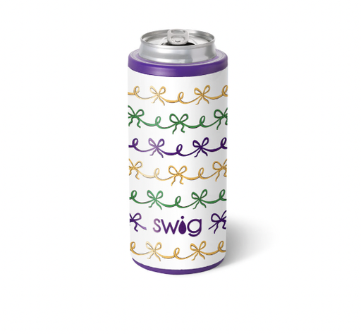 Mardi Gras Bows Skinny Can Cooler 12oz