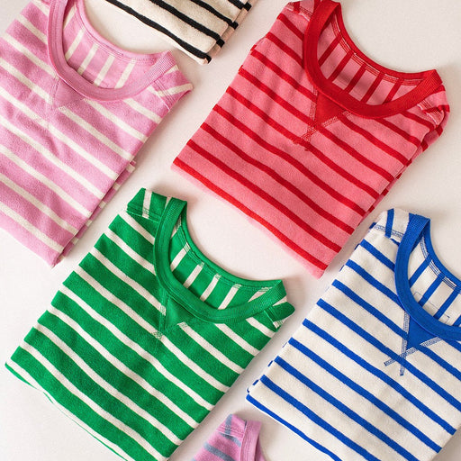 Original price $26.25 - Original price $26.25Original price$26.25$26.25 - $26.25Current price $26.25Oversized Stripe Casual Comfy Knit Top Round Neck Drop Shoulder Short Sleeve Raw Edge Detail