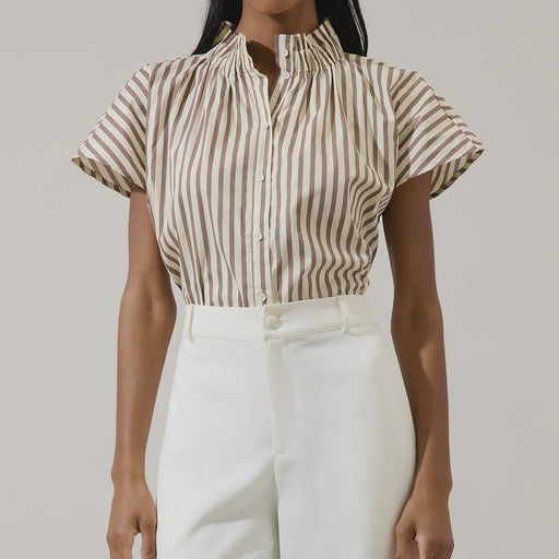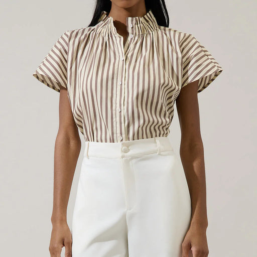 Original price $52.50 - Original price $52.50Original price$52.50$52.50 - $52.50Current price $52.50Head out the door in stylye with this top! A striped pattern creates this mock neck top with a button up front. The dolman sleeves have small gathe...