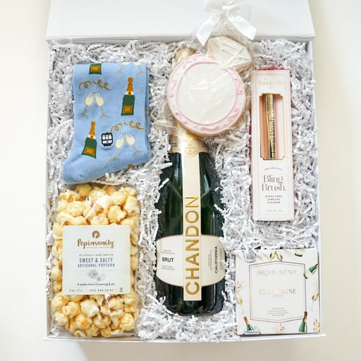 Original price $132.00 - Original price $132.00Original price$132.00$132.00 - $132.00Current price $132.00This gift box includes: Chandon Brut [750mL]Bride Ring Zipper PouchCongratulations Frosted Sugar CookieBonfolk Champagne SocksAdventure Luggae Tags...