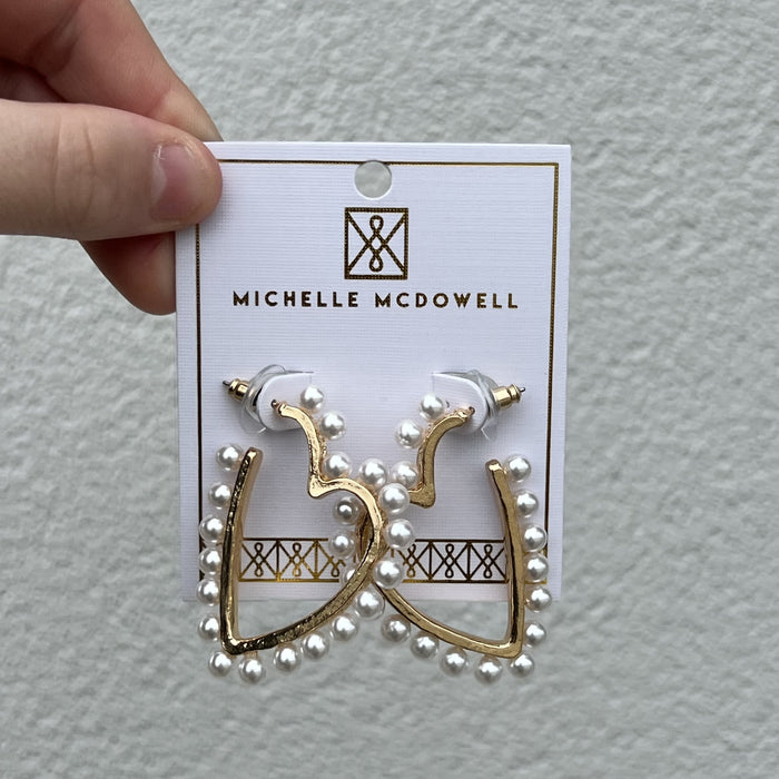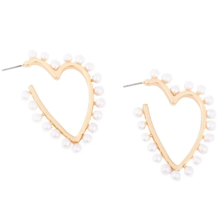 Pearl heart earring. Brass plated metal, hypoallergenic, nickel and lead-free.