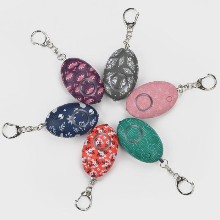Deter predators wherever you go! These colorful personal safety alarms are the practical accessory everyone needs. Pull the alarm pod from its keychain to emit an ear-splitting 100 decibel sound! MAYDAY also has a push-button LED flashlight for emergencies and small spaces. Lobster claw clip attaches easily to purses, back packs and belt loops for easy access when you need it. Great for campus life, solo trips, late nights and parking lots! -Emits an extreme 100 decibel sound -Push-button LED flashlight activation -6 unique patterns -Blister carded and peggable
