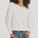 Puffy long sleeve sweatshirt, crew neck with rib "V" insert, cuff, waistband finish. Solid color knit on relaxed fit. Leisure classics versatile all you do... the effortless carefree comfort!